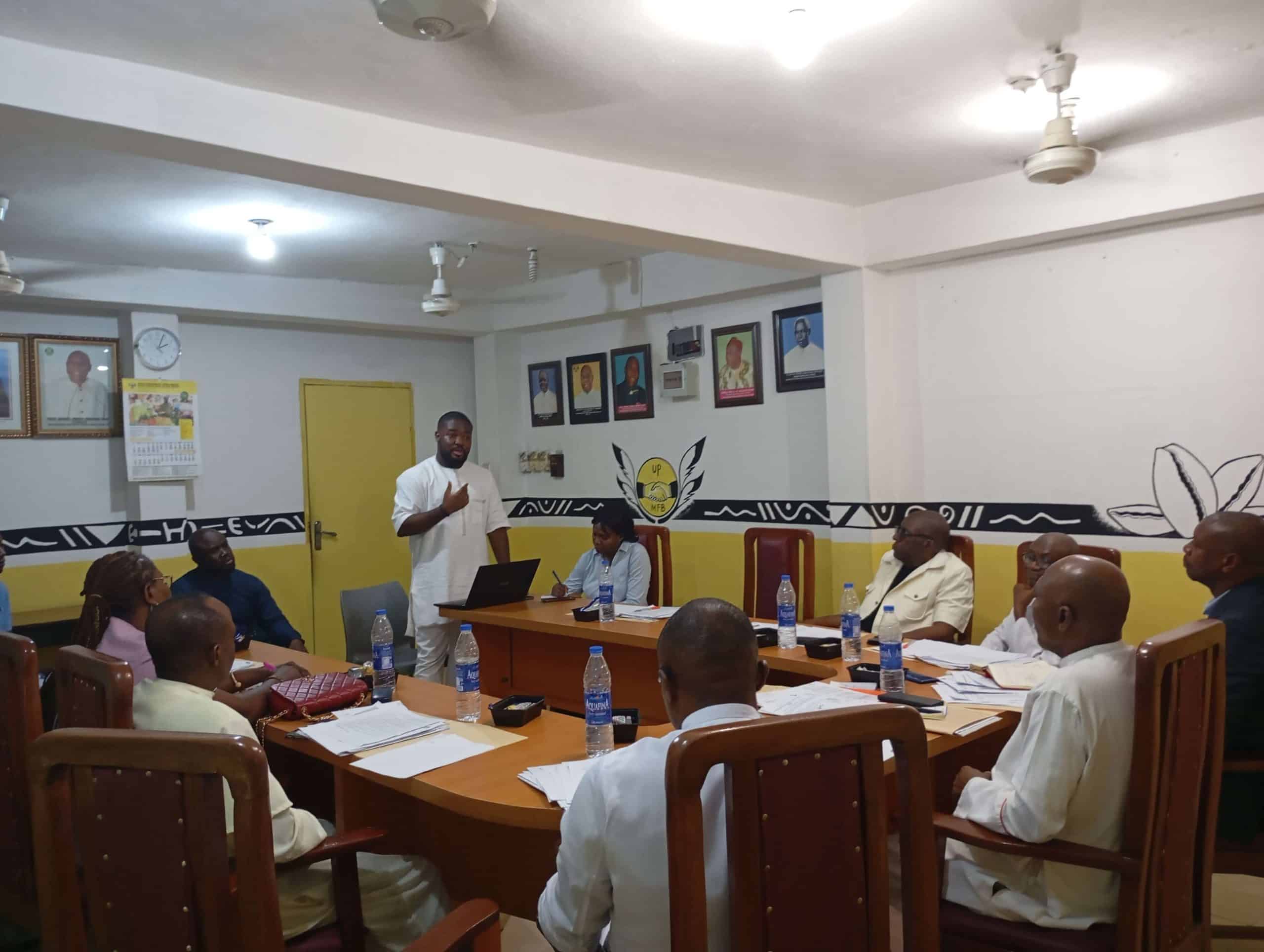 The highlight of the session was a presentation by Dr. Bryan, co-founder of Ondigo Technologies, who addressed the Board on the transformative role E-transport solutions can play in boosting mobility, job creation, and eco-friendly transportation in Enugu. He outlined the company’s innovative model and proposed areas where UPMFB could provide financial backing, technological integration, and strategic support.